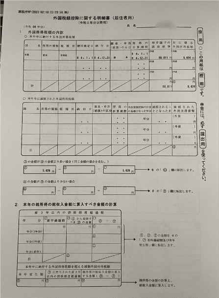 ここで必要になる書類が、前年の「外国税控除額に関する明細書」になります。
