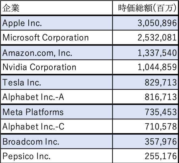NASDAQ 時価総額ランキングTOP10